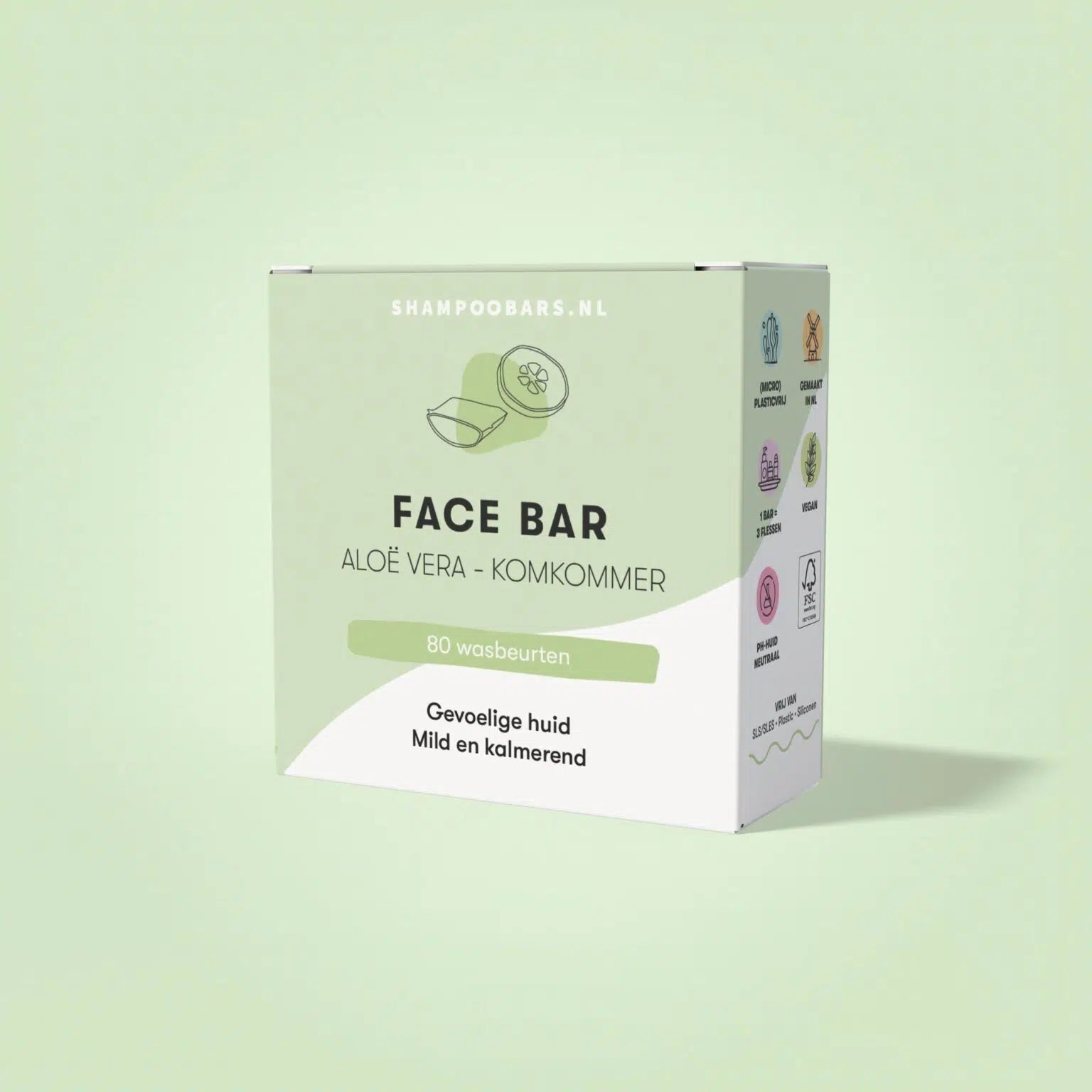 Een Face Bar is een facewash die je hetzelfde gebruikt als onze shampoobars. Even natmaken, lekker tussen de handen opschuimen, inzepen en afspoelen. Alleen dit keer het schuim op je gezicht gebruiken en niet op je haar! Je kan hem elke dag gebruiken om je gezicht mee te reinigen en is ook geschikt als als make-up reiniger.