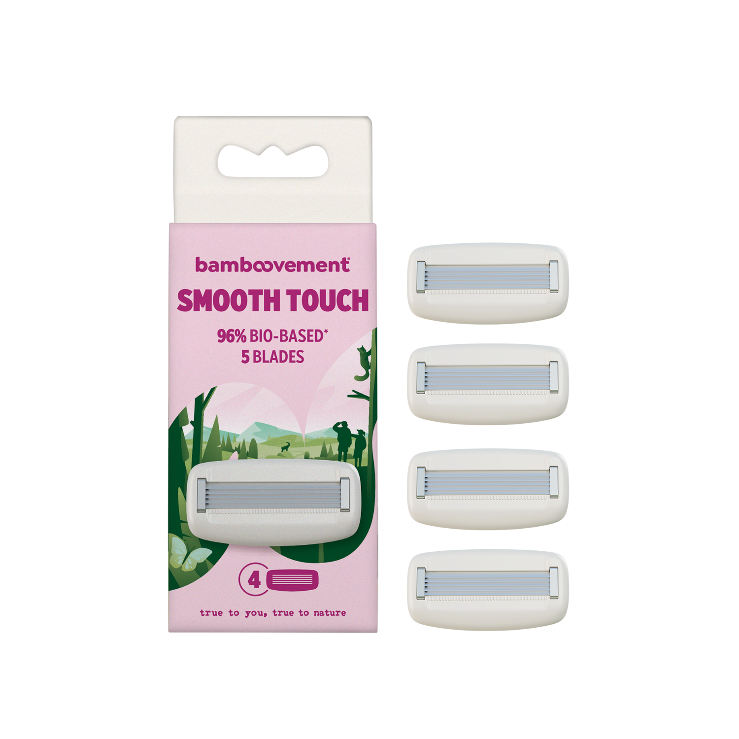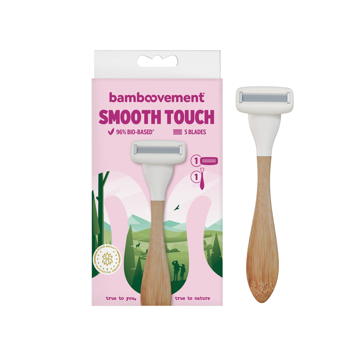 De Smooth Touch Body Razor is een navulbaar scheermes met een ergonomisch bamboe handvat, ontworpen voor een comfortabele en gecontroleerde scheerbeurt. De vijf scherpe mesjes van Zweeds staal zorgen voor een glad resultaat, terwijl de flexibele scheerkop soepel meebeweegt met de contouren van je lichaam.