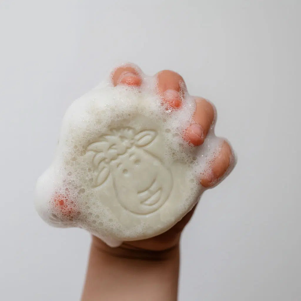 De bar combineert shampoo, body wash en face wash in één, waardoor losse plastic flessen overbodig zijn. Hij schuimt rijkelijk zodra hij met water in aanraking komt en reinigt huid en haar op een milde manier. De zachte babypoedergeur geeft een vertrouwd en rustgevend gevoel, waardoor deze bar ideaal is voor de allerkleinsten.